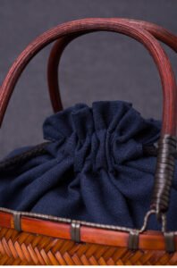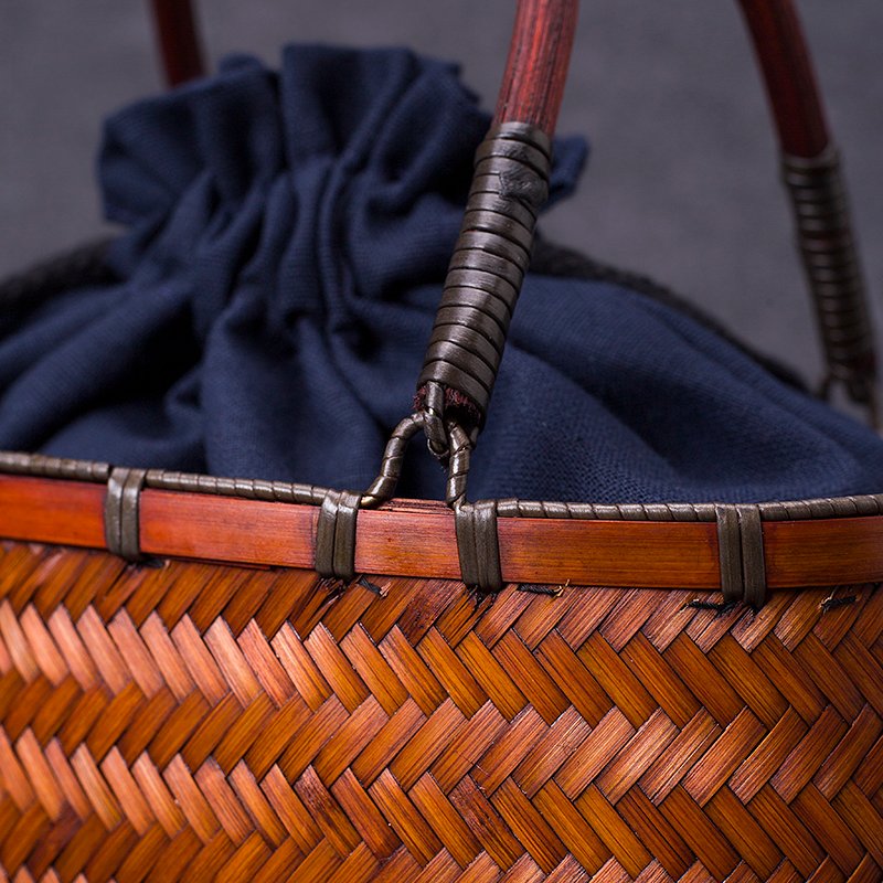 This hand-woven bamboo bag is crafted from natural bamboo, crafted entirely by artisans with meticulously crafted geometric patterns. The bamboo’s gentle color reflects the passage of time, and paired with vintage wooden handles, every detail exudes the delicate warmth and warmth of traditional craftsmanship. The bag features a navy blue cotton and linen drawstring interior pocket, which securely holds teacups, bento boxes, and other items, adding a touch of Japanese simplicity and elegance. The included matching pendant adds a touch of playful charm, with tassels and charms swaying gently, adding a touch of playful charm.