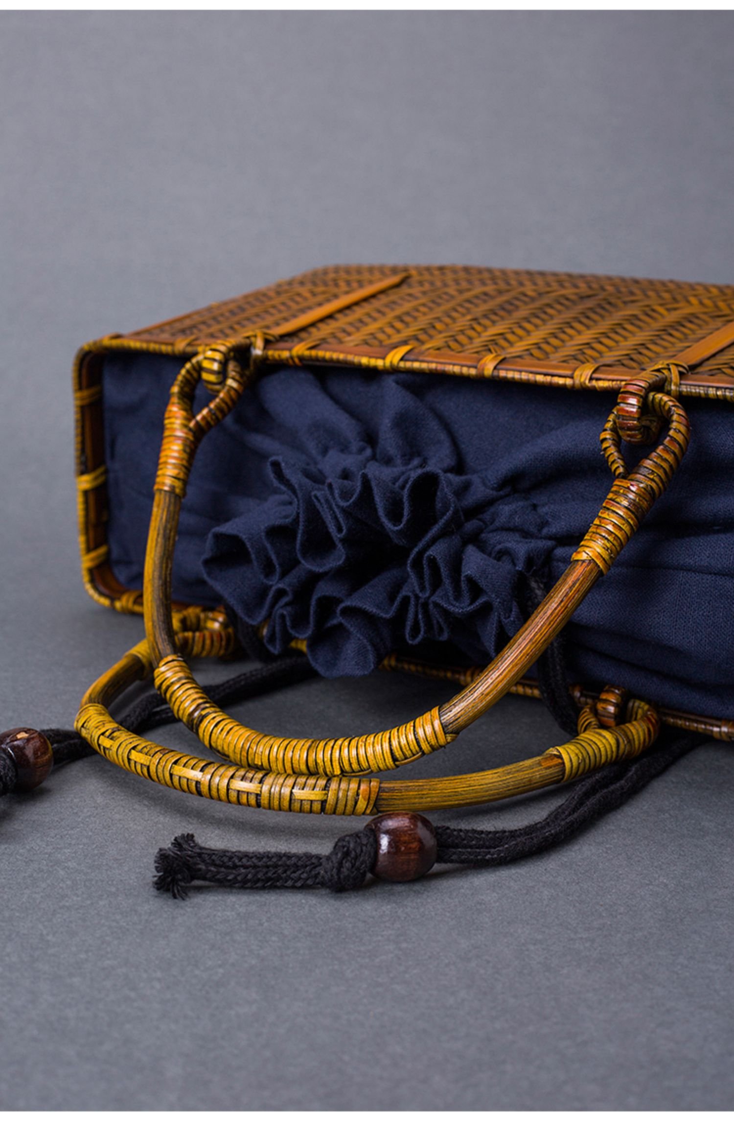 Retro bamboo woven bag tea ceremony tea set storage hand basket hand-woven bag tote bag Japanese lunch box bento bag bamboo bag
